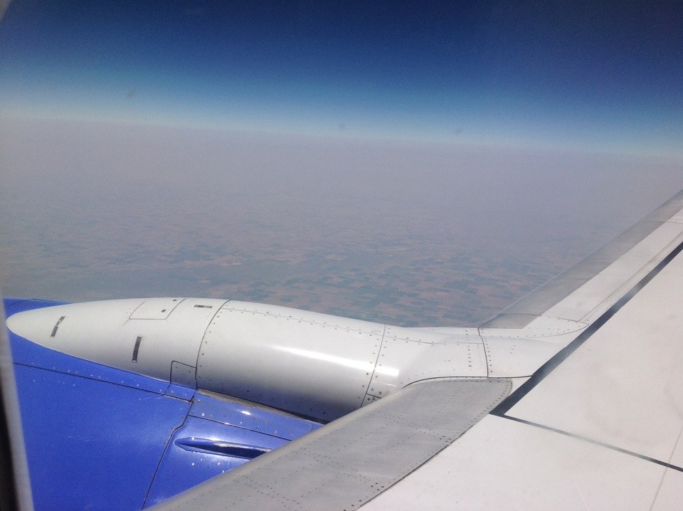 In the air flying from Toronto to Phoenix, Arizona. This picture was taken through the window next to our seat.