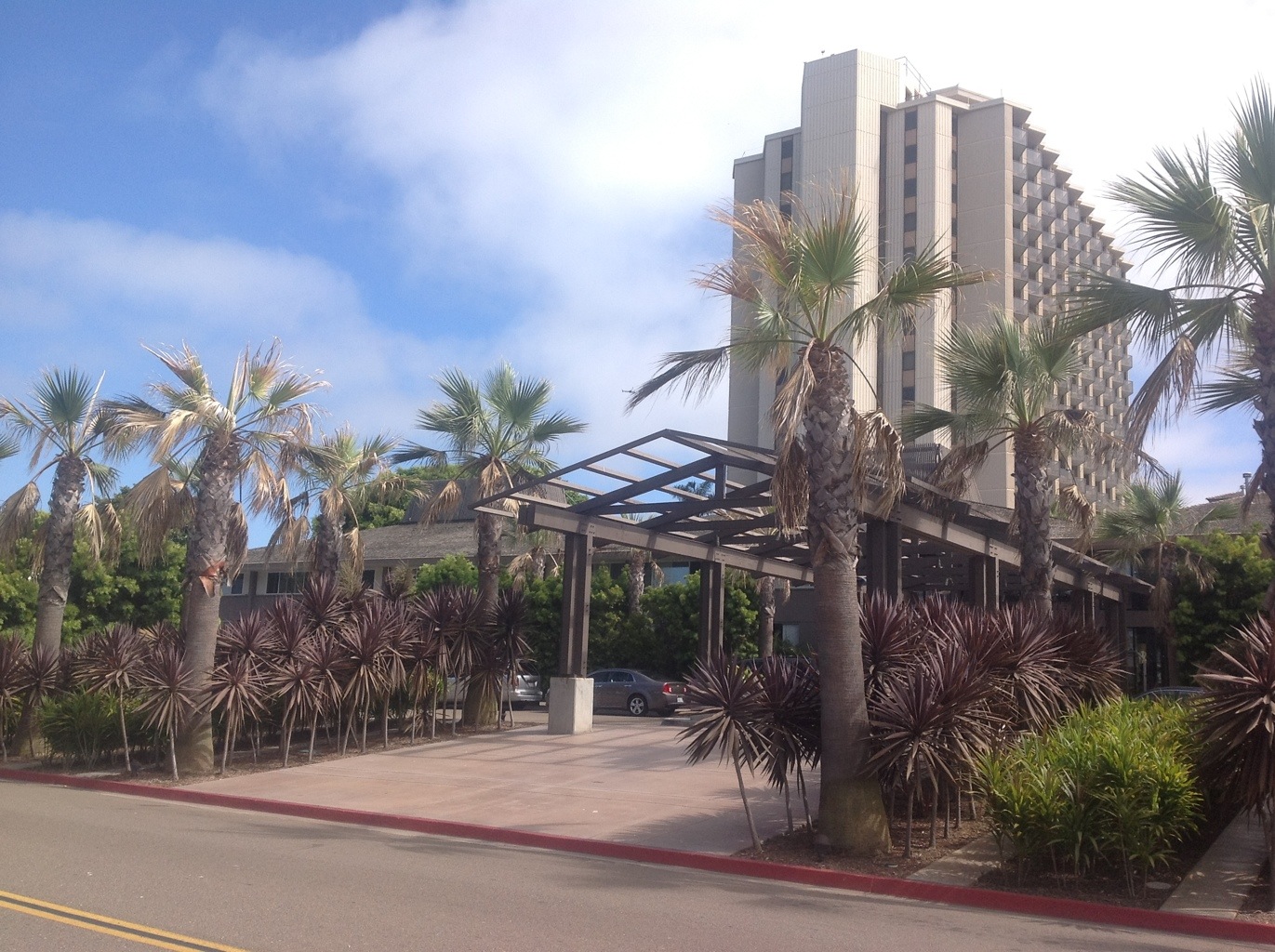 This is the front of our hotel. It is called the Hyatt and is on Mission Bay. It is about a 15 minute drive to downtown San Diego from here.