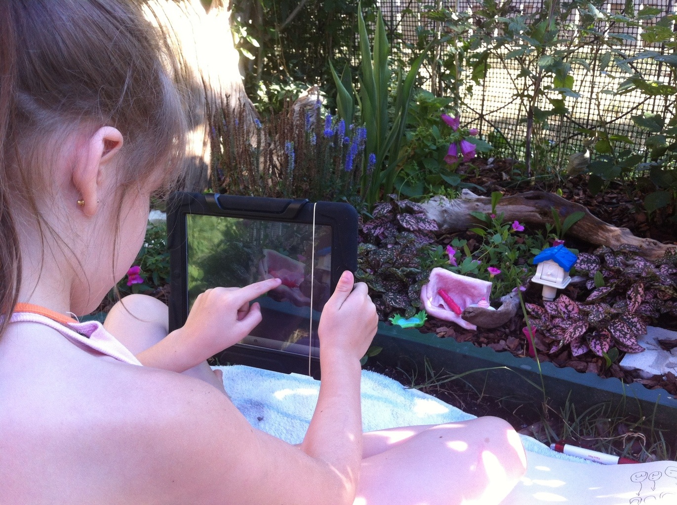 Medea using Sonic Pix to create her story in the garden: The Catapillar and the Missing Vase!