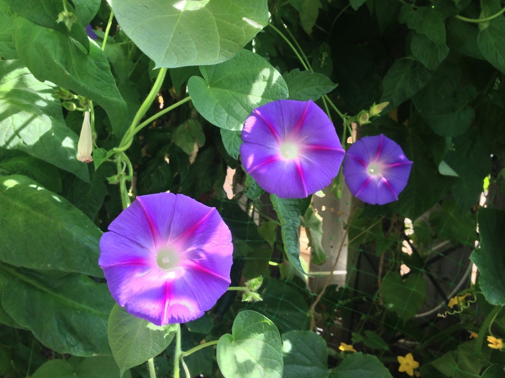 I especially get a kick out of the Morning Glories…they manage to find a way to arrive and to give us beautiful flowers every year 🙂