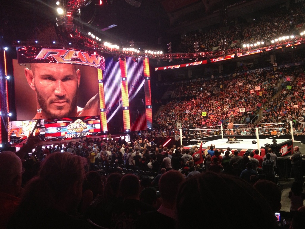 Randy Orton holds his championship high after defeating Goldust, Dustin Rhodes!
