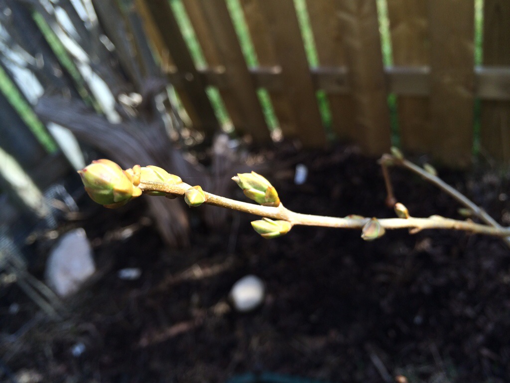 I was taking a walk through the garden, checking for new growth and was very happy with what I found! The Lilacs and Clematis are budding and leaves (Gladiolas)? are busting through the soil! Yay!